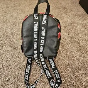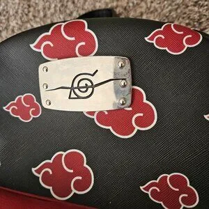 Naruto mini backpack, Shippuden Collection. Adjustable straps that say "TRAIN LIKE A NINJA". Inside pockets for easy organization. Metal plate has some smudging, see photos.