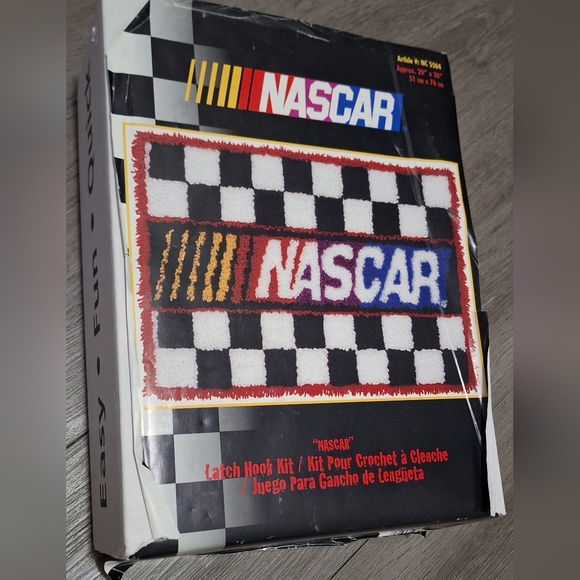 Nascar Latch Hook Kit #NC 5504. Latch Hook has been started. All was put into a baggie with the Latch Hook. It was put aside and I never got around to doing it.