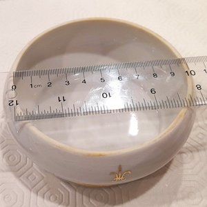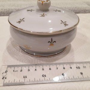 Nasco Stoneware VTG White Trinket Dish Gold Gilt Fleur de Lis Japan