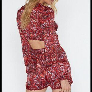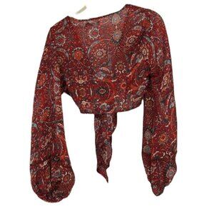 Nasty Gal Big Love Burgundy Paisley tie front balloon sleeve crop top 6