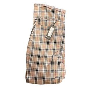 Bailing on plans for a new pants is our thing. These pants feature a high-waisted, tapered silhouette, check print throughout, turn-ups at hem, and zip fly closure.