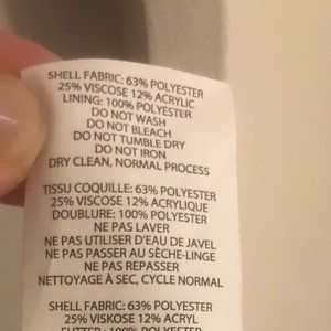 hi this looks absolutely amazing! could you post photos of the tags (the ones with fabric and care information) and measurements?