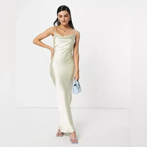 Nasty Gal White Cowl Neck Satin Maxi Slip Dress - Size 2