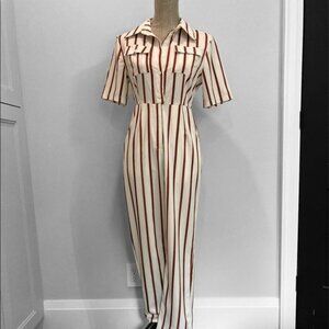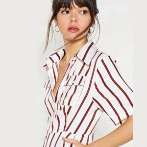 We can't say no to your stripe, babe. The You're Just My Stripe Jumpsuit features a utility design, V-neckline, pointed collar and breast / side pockets by Nasty Gal.