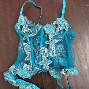 Nasty gal 2pc Elegant Blue Lace Lingerie Set corset Fairycore luxury S