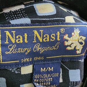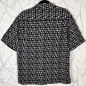 Nat Nast Black Abstract Geometric Print 100% Silk Camp Shirt
