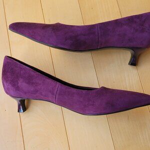 Beautiful deep plum shoes! Classic pump with a perfectly pointed toe. Suede upper. Worn only once for special occasion. In perfect condition!