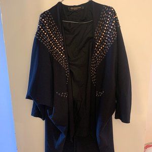 Really cool really heavy studded cardigan. This sweater is so well made and has a heavy draped feel when on. The studding shapes the head of a bull on the back with its horns wrapping to the front. looks amazing on.
