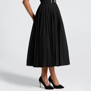 The Natassia Midi Dress in Black/White is the epitome of elegance with a bold, modern twist. Designed to turn heads, it showcases striking fan-shaped straps and a sweetheart neckline, highlighted by a contrast peek-a-boo gathered detail with a tie to the centre for a hint of allure. The structured, boned bodice with lace-up back cinches the waist, sculpting a flawless silhouette. Flowing effortlessly to a midi length, the full, knife-pleated skirt moves beautifully with every step.