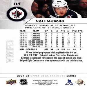 Nate Schmidt (Jets) 2021/2022 Upper Deck Extended Series Hockey Card -Number 664