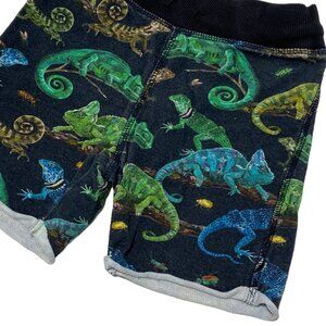 I LOVED these shorts on my little dude. They're so styled! Long pull on jersey shorts with elastic waist and raw hems. Black with vibrant chameleon print. Get them in your bundle with some tee's, tanks and sandals for an amazing closet discount! GUC, some fading from wash wear.