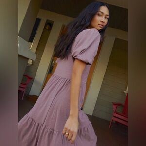 A breezy tiered midi dress with perfectly puffed sleeves and a sexy V neckline.