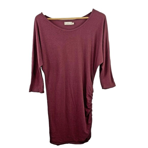 Nation LTD Dress Womens Size Large 3/4 Dolman Sleeve Round Neck Ruched Stretch