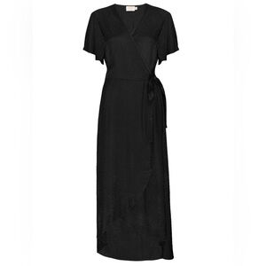 Nation Ltd Jacquard Wrap Ruffle Hem Dress Black