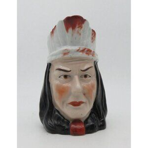 This vintage ceramic character jug features a detailed Native American Indian Chief's head design.