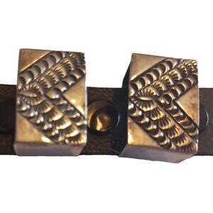 Beautiful stamp work on this vintage, signed, sterling silver Ranger 4-piece belt buckle set by Harold Yazzie? Harold Young? Signed HY. Stamped Sterling and also acid tested. Entire item weighs 66g. Navajo. Note: The main buckle is quite reflective so difficult to photograph but there are no dents or scratches on it. It is in great condition. Made for a 1" belt.