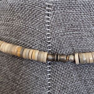Beads: The necklace is composed of Heishi shell beads, which are tiny, flat discs traditionally made from various types of shells or stones.