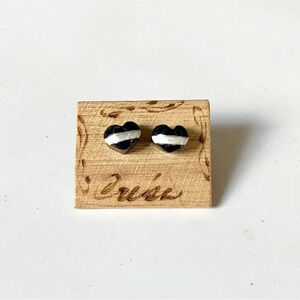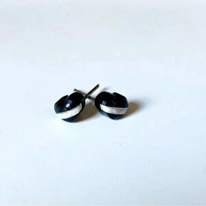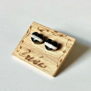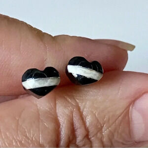 They are made from sterling silver, onyx, and mother of pearl inlay. Each earring is 7/16" in length.