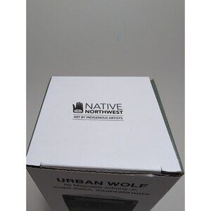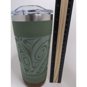 New unused stainless steel double wall 20oz cork base travel mug from Native Northwest "URBAN WOLF" design by Maynard Johnny Jr, Coast Salish Kwakwaka'wakw artist. Includes BPA free push-on lid and FDA standard cork base. See photos for a closer look!