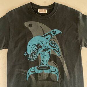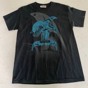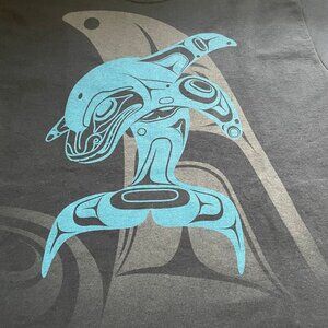Native Origins Whale Tradition SS Crew Neck Cotton T Shirt Blue & Gray NSz M NWT