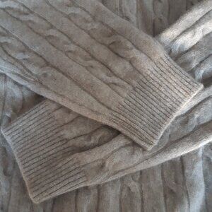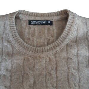 Native World SZ M Possum & Merino Wool Men's Cable Knit Tan Crewneck Sweater