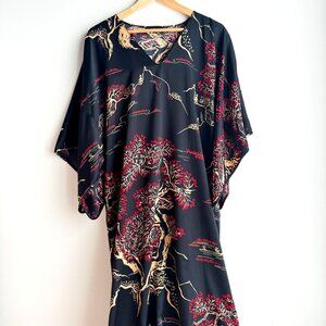 Natori Kimono Style Black Red Nightgown M.