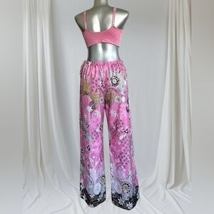 ✅Natori Pink Wide Leg Pants with Lace Trim