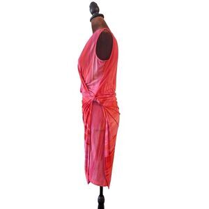 Natori Red Pink Watercolor Ruched Sheath Dress V-Neck Sleeveless Cocktail Small