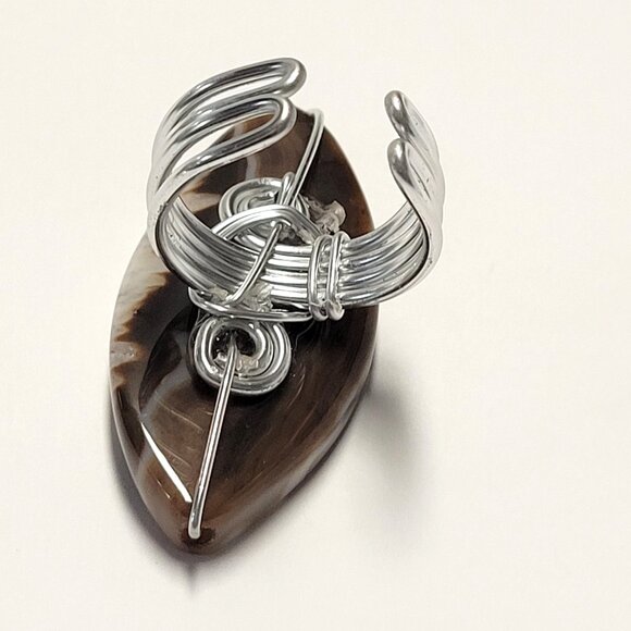 Natural Banded Agate Onyx Cabochon Adjustable Band Handmade Semi Precious Ring