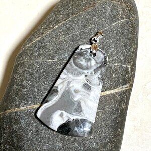 Natural Black & White Agate Pendant, Large Genuine Gemstone Pendant
