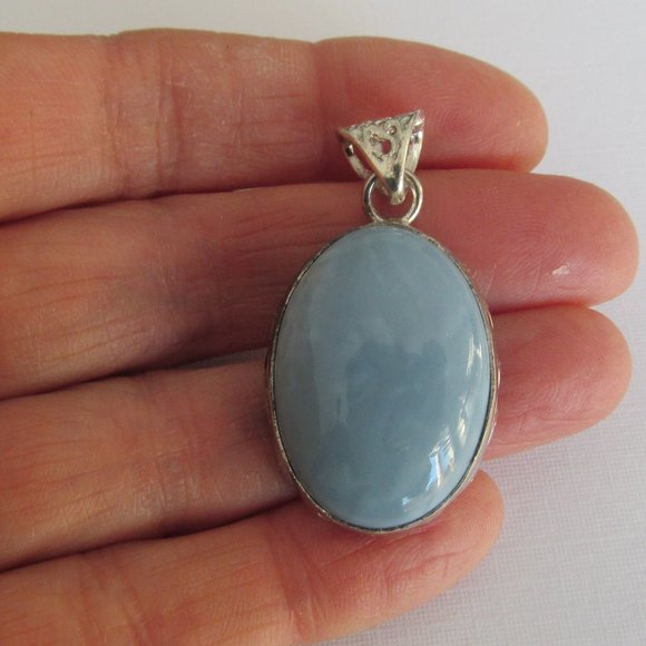 Check out this Natural Blue Angelite Gemstone Pendant Oval .925 Sterling Silver
