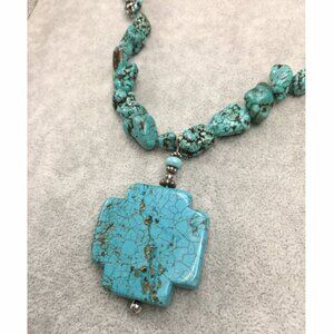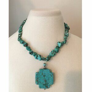 Natural Chunky Statement Turquoise with Howlite Cross Pendant Necklace