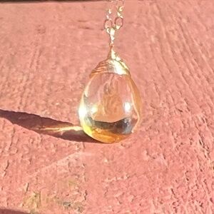 This beautifully clear citrine is cut into a smooth cabochon briolette and hand wire-wrapped in solid gold. A classic, elegant piece perfect for everyday wear or layering.