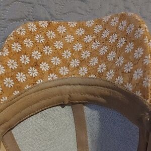 Excellent condition seldomly worn . There is a black mark on the inside as you will see in the picture, otherwise it looks unworn . Stylish cork cap with a floral pattern. Perfect for casual outings. circumference 22 it is adjustable. Tan/Dijon mustard and white