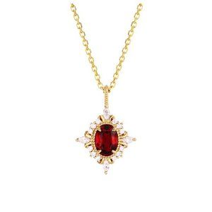 Vintage inspired, this delicate diamond-shaped Victoria necklace chain features a natural red-purplish garnet stone set in elegant shiny crystals. They are made of genuine garnet stone in nature and gold vermeil (14K Gold Layered over 925 Sterling Silver). Its classic yet modern look makes it suitable for any occasion, be it official (Wedding Ceremony, Banquet ) or casual (daily wear, party, etc. )