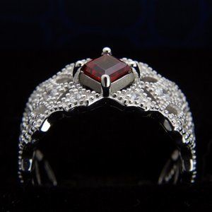 This is a brand new sterling silver ring with a natural garnet stone in the middle. The gemstone was mined from Mozambique. It is solid sterling silver, and is an open ended ring.
