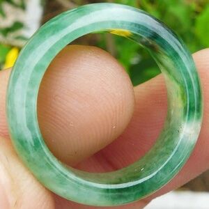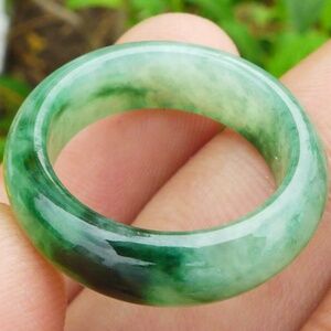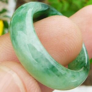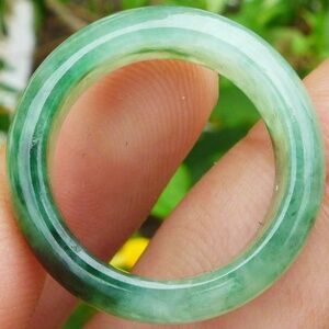 Natural Grade A Jadeite Jade One Piece Ring Carving Transparent Green 17mm