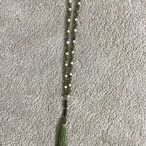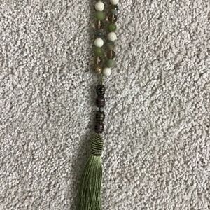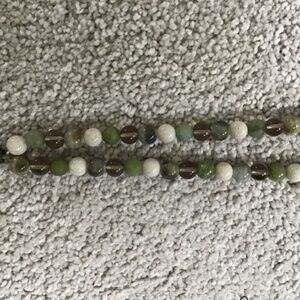 Natural Cream, Yellow Brown Tiger Eye, Green Adventurine Mala Necklace
