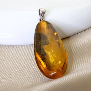 Natural Honey Baltic Amber Pendant, 925 Silver Bale With Inclusions