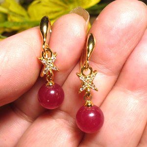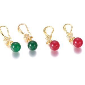 Natural Jade earrings with tiny CZ accent Christmas colors 2/$25
