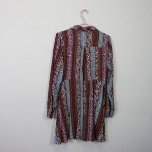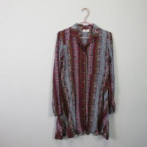 Natural Life Shirt Dress S 100% Rayon Button Red Floral Long Sleeve Boho 300