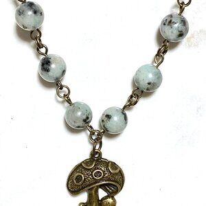 Natural Light Teal Kiwi Jasper Necklace, Bronze Round Mushroom + Genuine Gemstone