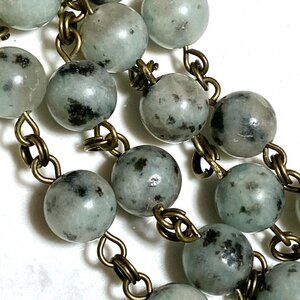 Natural Light Teal Kiwi Jasper Necklace, Bronze Round Mushroom+ Genuine Gemstone