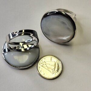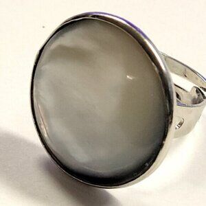 Beautiful Mother of Pearl or Pearl ring. In a silvery white sheen with a touch of dark grey or black hue on its edges.