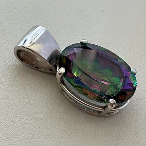 Natural Mystic Topaz, Real 14k White gold pendant.