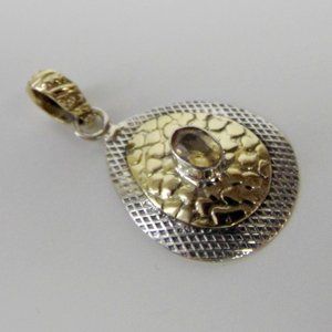 Natural Oval CITRINE Sterling Silver Two tone Structured Pendant