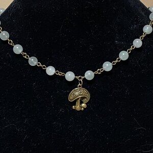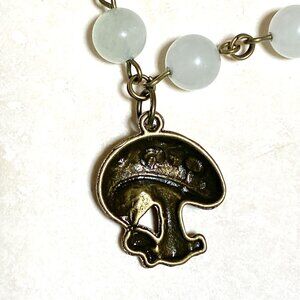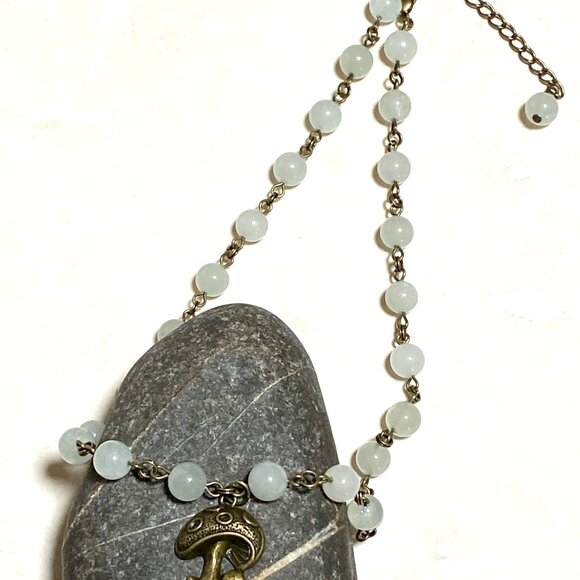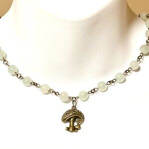 Natural Pale Green Aventurine Necklace, Bronze Round Mushroom+ Genuine Gemstone