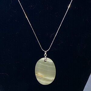 Natural Pale Green Onyx Pendant, Large Genuine Gemstone Oval Pendant
