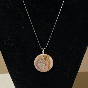 Natural Peachy Agate Pendant, Large Genuine Gemstone Round Coin Pendant