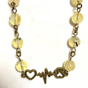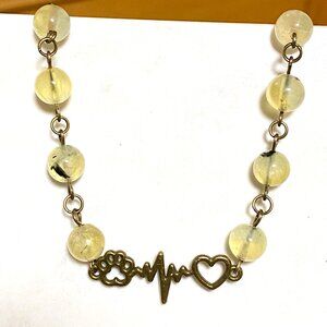 Natural Yellow Green Prehnite Necklace, Bronze Paw Print Heart Beat + Genuine Gemstone